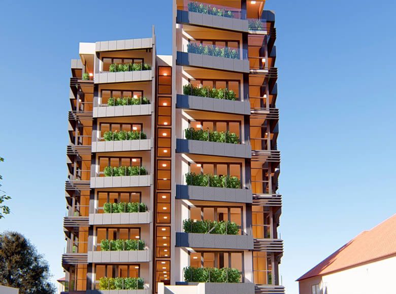 Descriptif : Immeuble R+7 avec parking sous-terrain et salle de fitness et salle de fête au RDC, composé de deux appartements de 3 chambres par niveau et un penthouse au 7eme étage.