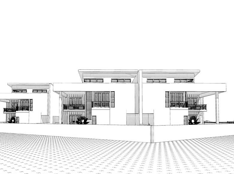 Descriptif : Conception de 3 habitations de 4 chambres avec aire de jeu et piscine collectif.