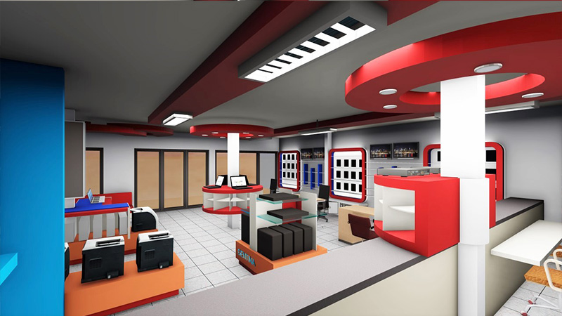 Descriptif : Etudes et travaux de réalisation de rénovation d’un bâtiment R+2 pour bureaux et showroom.